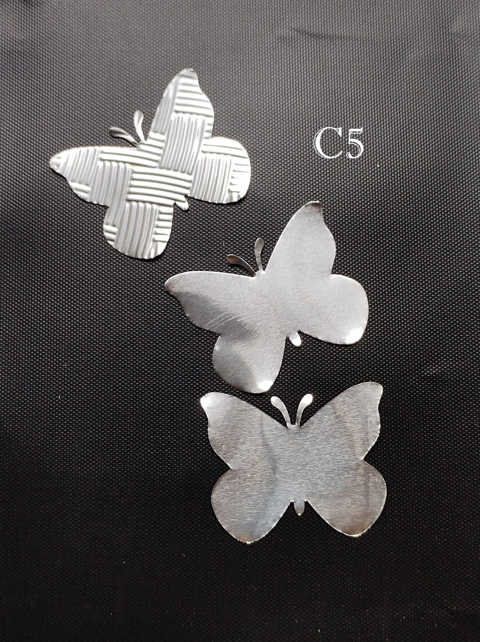 Piezas caladas en aluminio para realizar artesanías. Se pueden intervenir con todo tipo de técnicas y pinturas. Se adhieren en superficies rígidas con adhesivo de contacto