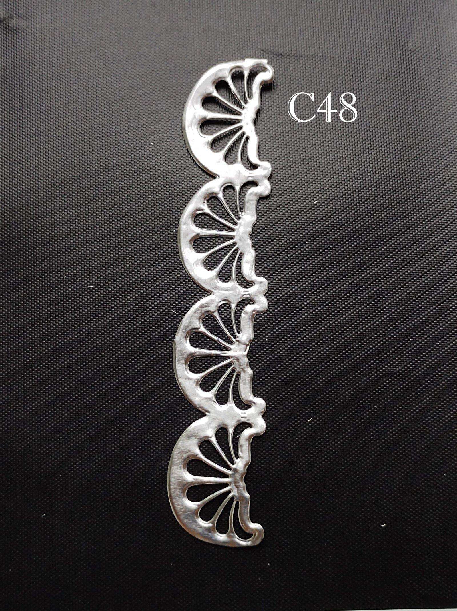 Piezas caladas en aluminio para realizar artesanías. Se pueden intervenir con todo tipo de técnicas y pinturas. Se adhieren en superficies rígidas con adhesivo de contacto